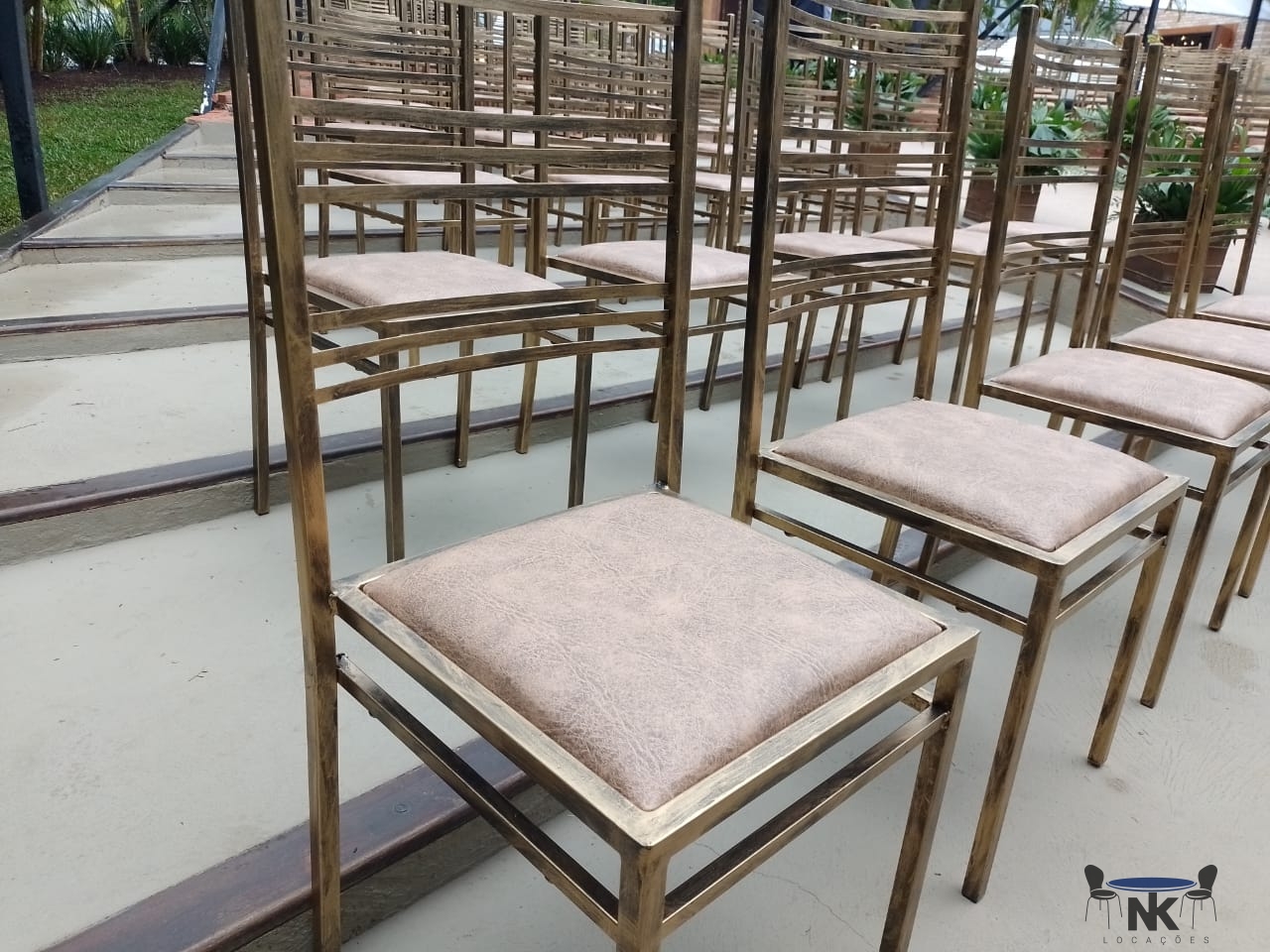fabricado em aço (ferro) no metalon 20x20,na cor ouro velho, estofada ,suporta 160kg